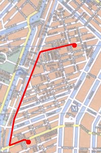 Vanuit het Rozentheater steekt u schuin over (verspilt u vooral geen tijd met uitkijken) en gaat richting West. Bij de Lijnbaansgracht maakt u een scherpe bocht